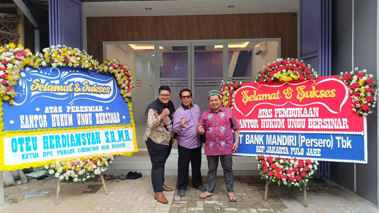 Kabupaten Bogor - Kantor Hukum Ungu Bersinar (KHUB) resmi beroperasi di Perumahan Wonderland Palace, Jalan Raya Pondok Rajeg, Cibinong, Kabupaten Bogor, Minggu (14/12/2025).