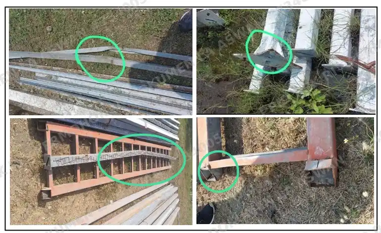 Kerusakan terjadi saat pembongkaran di Palu yang dilakukan tenaga kerja kasar dengan metode pelepasan yang terindikasi salah. Material utama counterpoise bengkok dan terlipat, membutuhkan perbaikan sebelum dapat dipasang dengan presisi.
